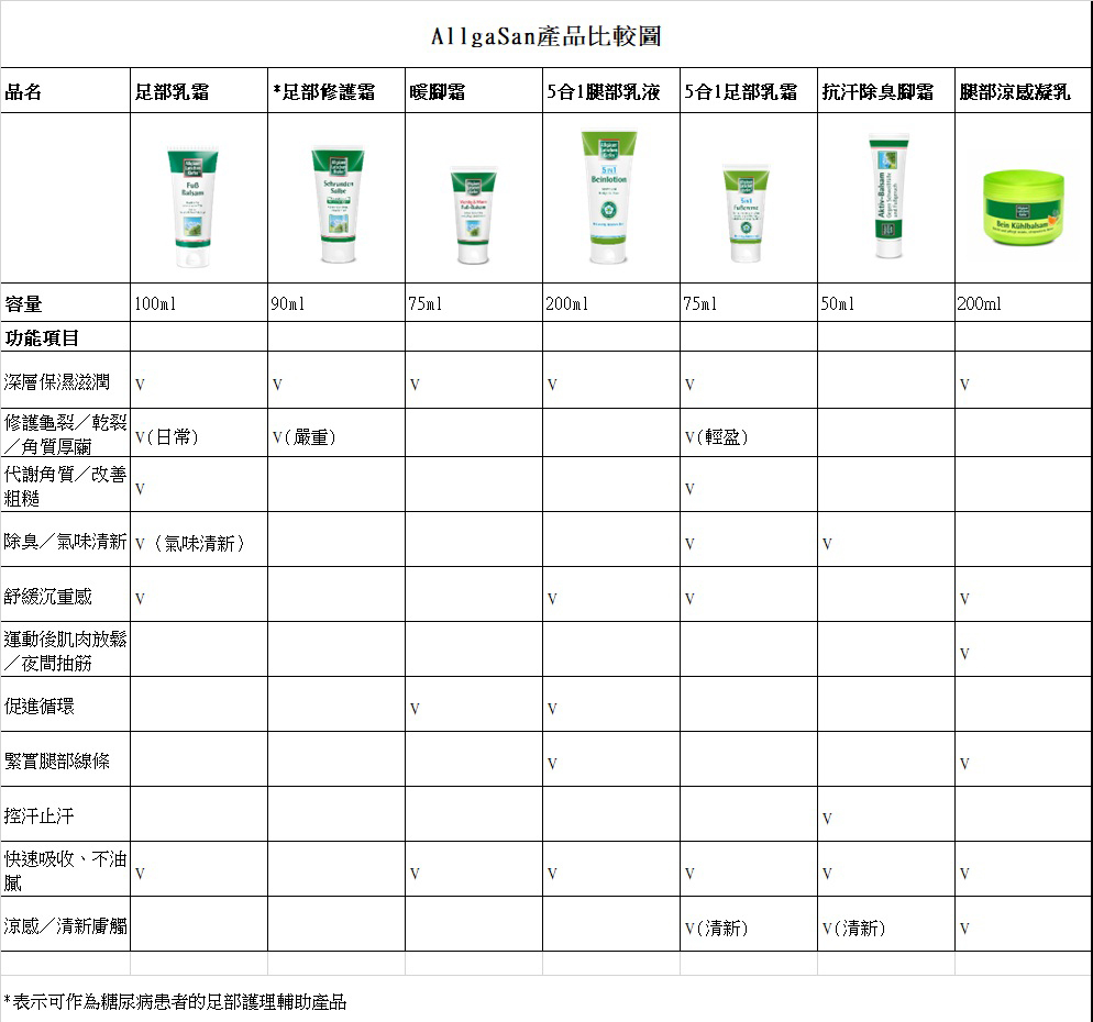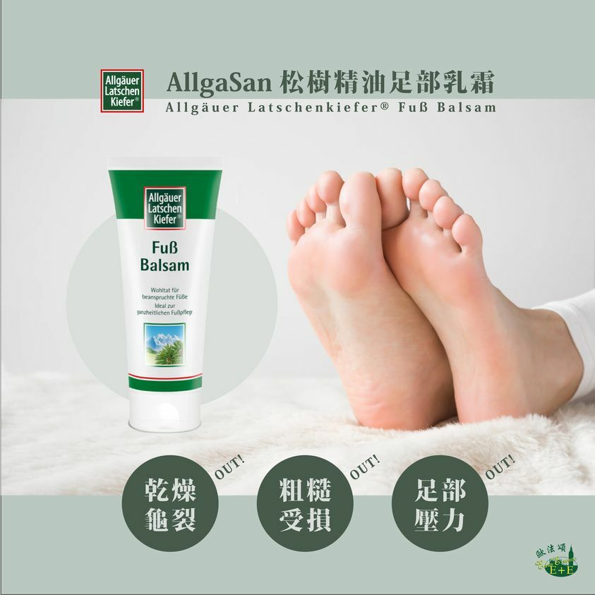 AllgaSan足部乳霜含有德國阿爾高山松樹精油及冷杉葉油,搭配按摩使用能改善肌膚乾燥、舒緩腳部肌膚不適感,並使其恢復柔軟彈性。