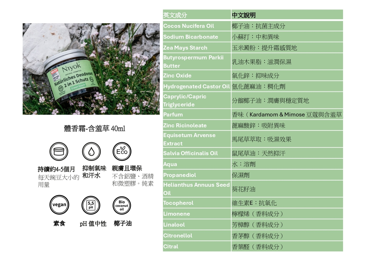 至2025-11-30T16:00:00.000+00:00截止 全店,秋季5000滿額禮:德國NIYOK體香霜-維他果40ml*1 (效期:2026/4) (價值$680)